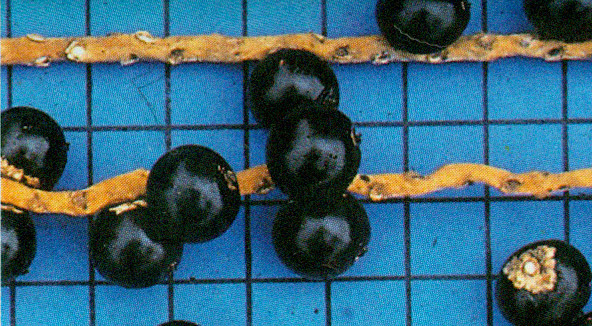 fruto pequeno, mede entre 1 e 1,4 cm de diâmetro, de cor preta, de casca lisa, interior carnoso e fibroso. A polpa escassa encerra apenas uma semente.