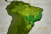 semente quase esférica, parda, entre o cinza e o amarelo, envolta por uma cobertura fibrosa, com até 10 mm de diâmetro.